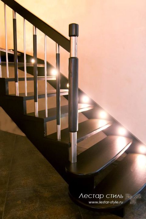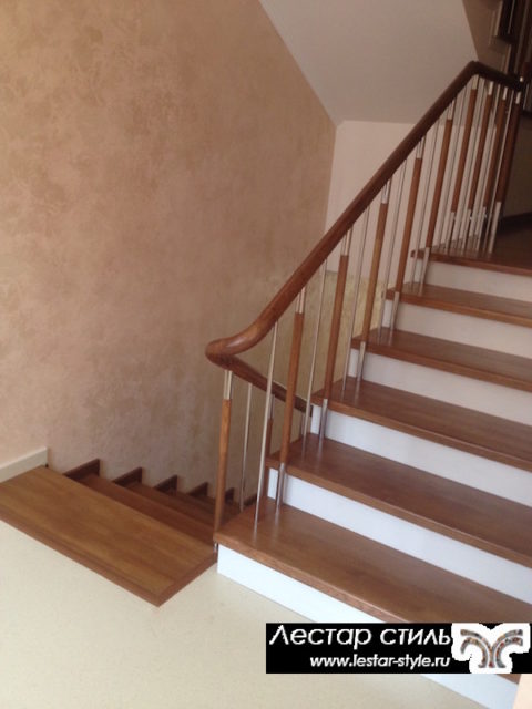 При изготовлении балясин комбинируют металл и дерево.Форма сечения балясин как правило круг D32мм, но может также изменяться по желанию.